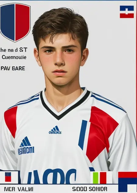 以下のトークンをさまざまな組み合わせで使用できます:1boy、male focus、sportswear、soccer uniform、english text、logo、flag