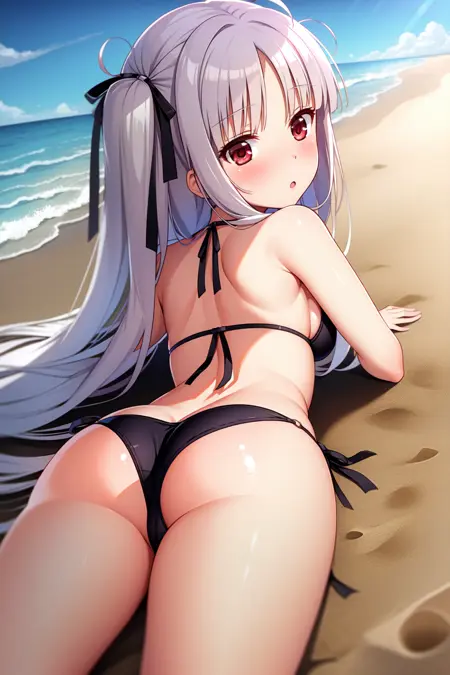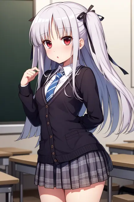 外观:朱莉,红眼睛,灰发,长发,两侧向上梳理,齐刘海,发带,黑色发带