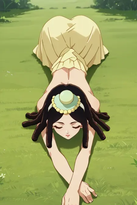 『ドクター・ストーン』のアマリリス。Pony Diffusion V6 XL で学習済み。強度0.8-1.0でテスト済み。