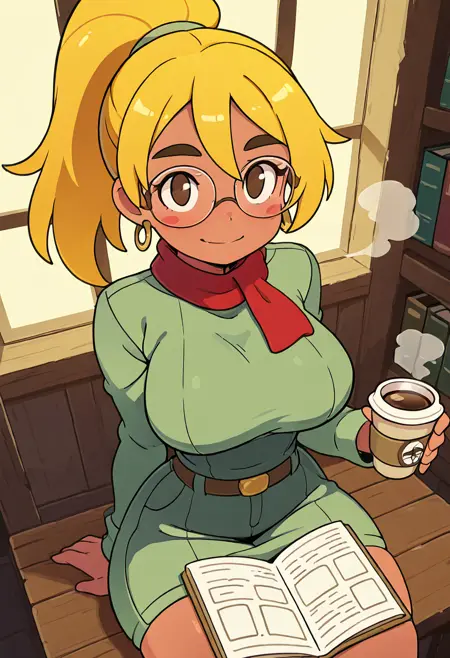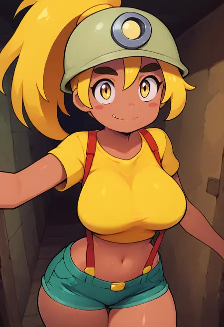 zzGoombella, blonde hair, ponytail, dark skin, dark-skinned female, skindentation, blush stickers,