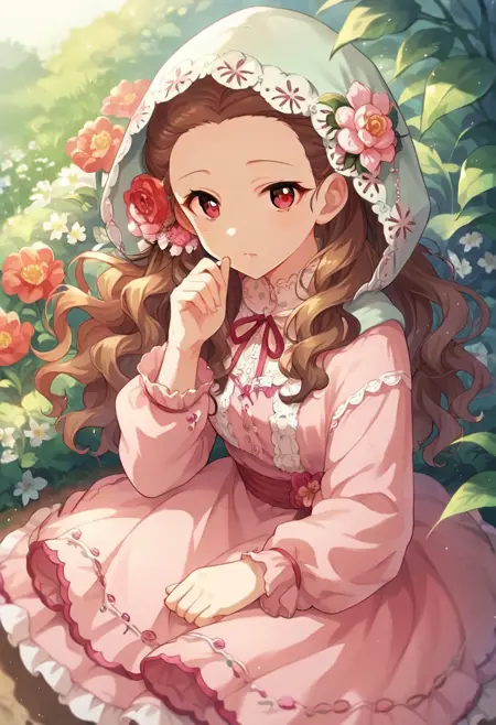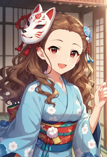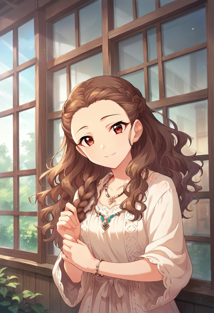 Trigger Words: seki hiromi, long hair, brown hair, red eyes, wavy hair
