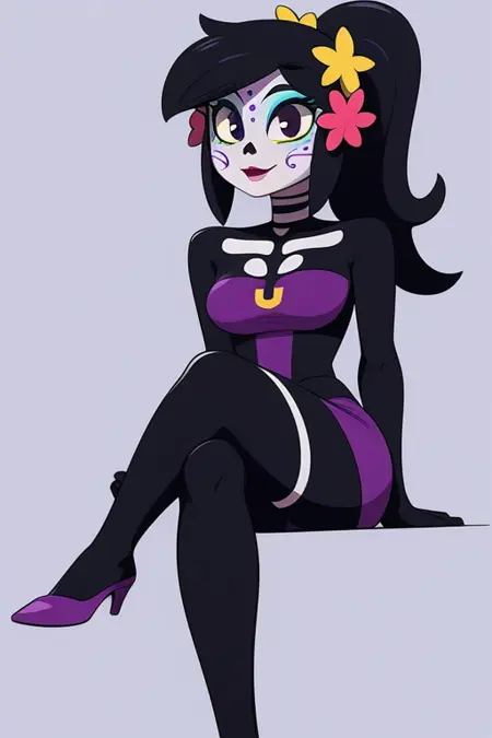 Recreates the character Catalina la Catrina, Mexican TV mascot from "Canal 5" for the Día de Muertos special.