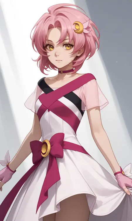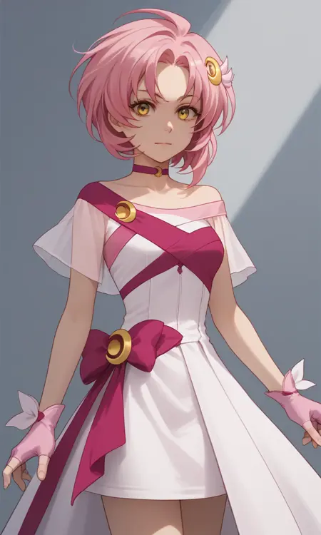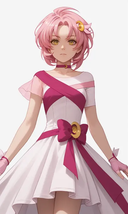 Luna Yumizaki: Luna、1girl、ピンクの髪、ショートヘア、黄色い目、ヘアアクセサリー、