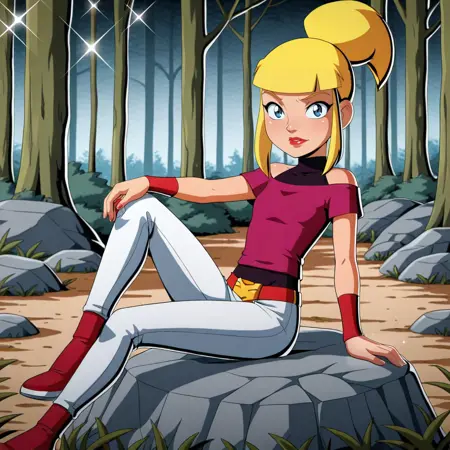 TamiSPZ, 1girl, solo, blonde hair, high ponytail, blue eyes, red lips,