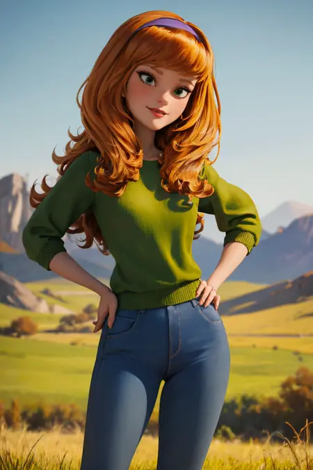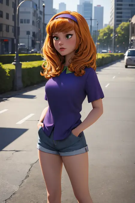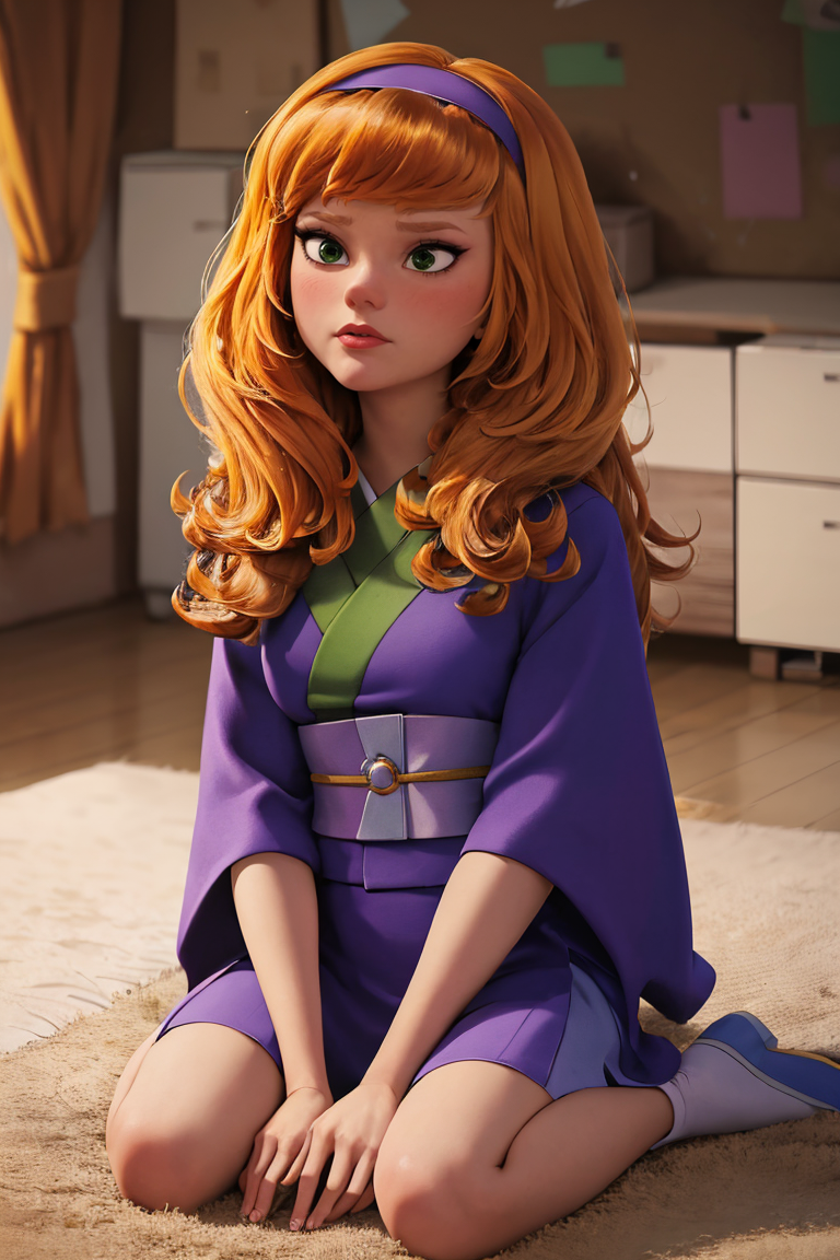 DaphneBlake, long hair, purple hairband, purple dress, purple belt, purple shoes