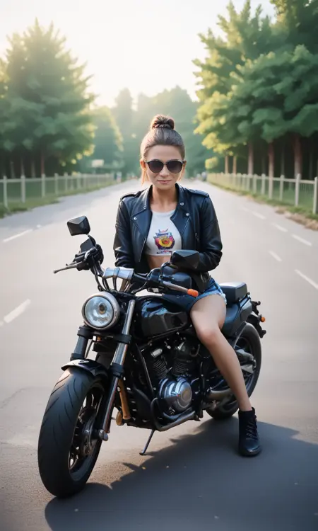 sitastmo, (front view)++++, ... sitting on a ... motorcycle, ...