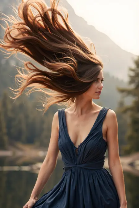 Flux Trigger Words: high-resolution photograph, long flowing hair, blowing in the wind