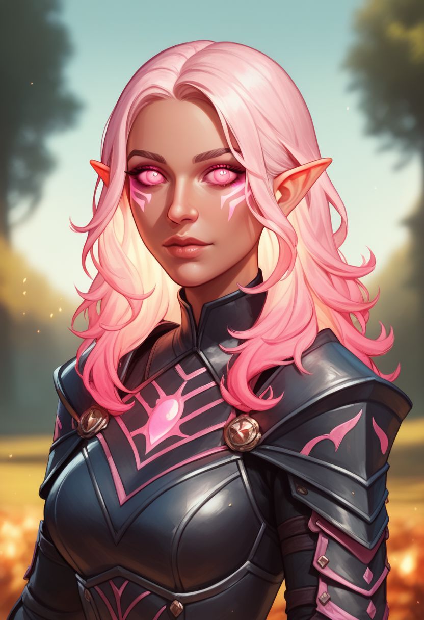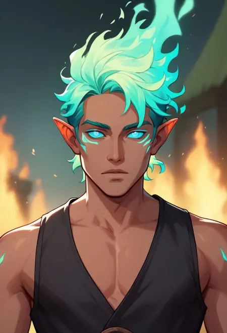 触发词:FireGenasi、火发、彩色虹膜、深色皮肤、尖耳朵
