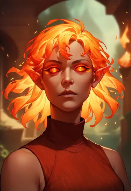 此LoRA将帮助你创建自己的火裔角色。选择眼睛、头发、服装,开始创作吧!