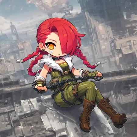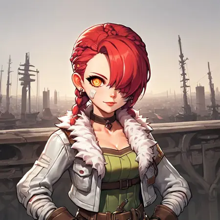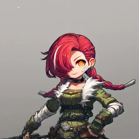 주요: 카데나, MSCadena, 카데나(MapleStory), Cadena_MapleStory, Cadena_(MapleStory), 여자, 소녀, 여성, 싱글, 1girl, 노란 눈, 탑즈눈, 분홍빛 붉은 머리, 붉은빛 분홍 머리, 붉은 머리, 분홍 머리, 머리에 하얀 줄무늬, 땋은 머리, 머리 땋기, 2개의 머리 땋기, 3개의 머리 땋기, 머리로 한쪽 눈을 가린 상태, 머리 앞치마로 한쪽 눈을 가린 상태, 땋은 머리, 반창고, 귀에 구멍 난 것, 귀 피어싱, 밝은 피부