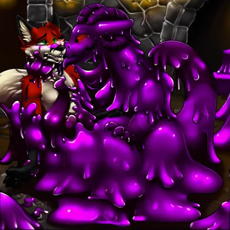 dark purple slime, glowing red eyes