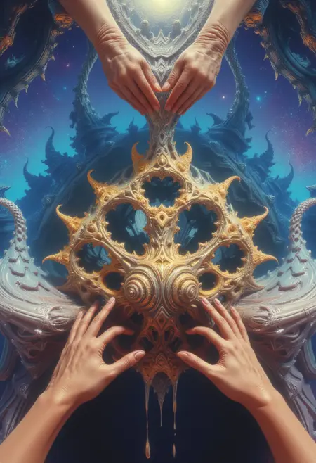 I learned how to use the on-site trainer. Full release now available. I'm pretty happy with the results. Might be a bit strong, lmk if you are interested in a less strong version. Trigger with Mandelbulb fractal just as before. My examples are a bit blurry, that's not from the LoRA, I'm still working out kinks in my Comfy workflow.