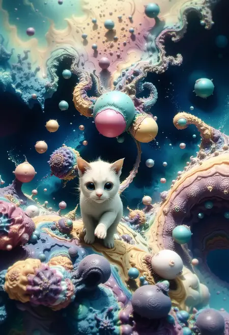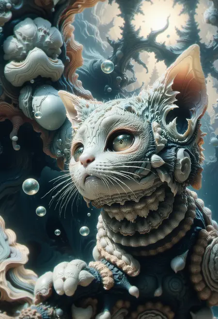 Is a model trained on aesthetically pleasing mandelbulb images. Stable diffusion produces mandelbulb imagery but I find it produces a fractal mud rather than beautiful geometric shapes. This model was trained on many different looking mandelbulb shapes, so by default it will come out kind of ugly. You should tell it what shape and color you're looking for and then it will actually work well. Mandelbulb, fractal, detailed, intricate, metallic, colorful, fog, shadow, depth of field, mushrooms, natural, closeup, distant... were all used in the tagging process and are therefore most likely to have the most effective impact. Might play well with humans with some trial and error. Plays very well with cats and flowers.