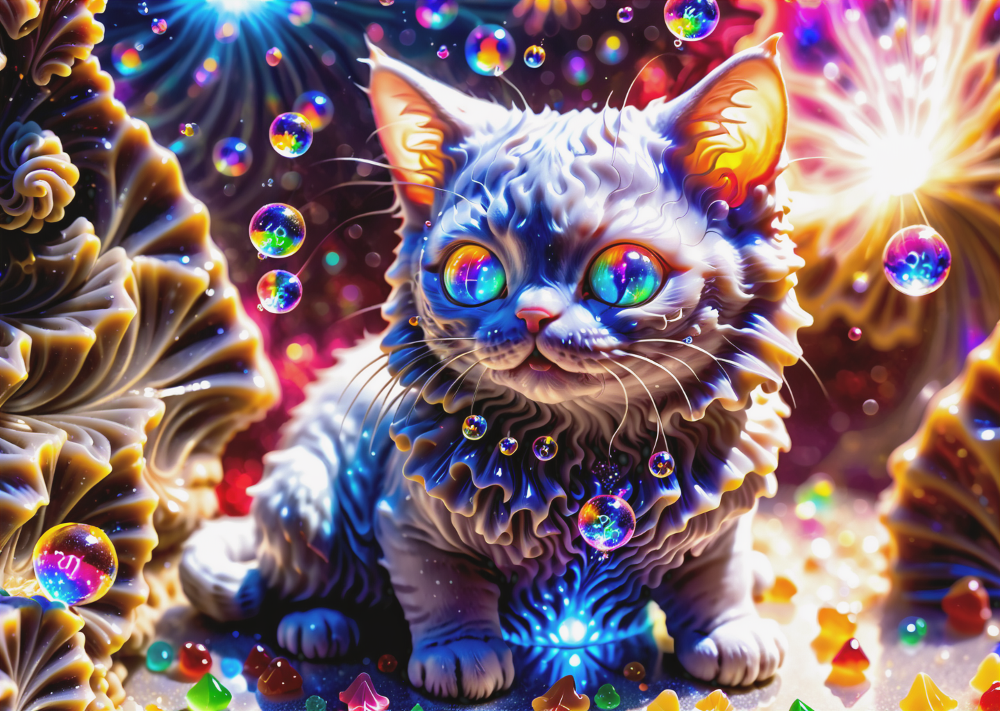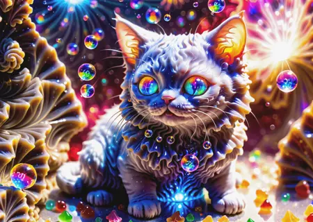 Is a model trained on aesthetically pleasing mandelbulb images. Stable diffusion produces mandelbulb imagery but I find it produces a fractal mud rather than beautiful geometric shapes. This model was trained on many different looking mandelbulb shapes, so by default it will come out kind of ugly. You should tell it what shape and color you're looking for and then it will actually work well. Mandelbulb, fractal, detailed, intricate, metallic, colorful, fog, shadow, depth of field, mushrooms, natural, closeup, distant... were all used in the tagging process and are therefore most likely to have the most effective impact. Might play well with humans with some trial and error. Plays very well with cats and flowers.