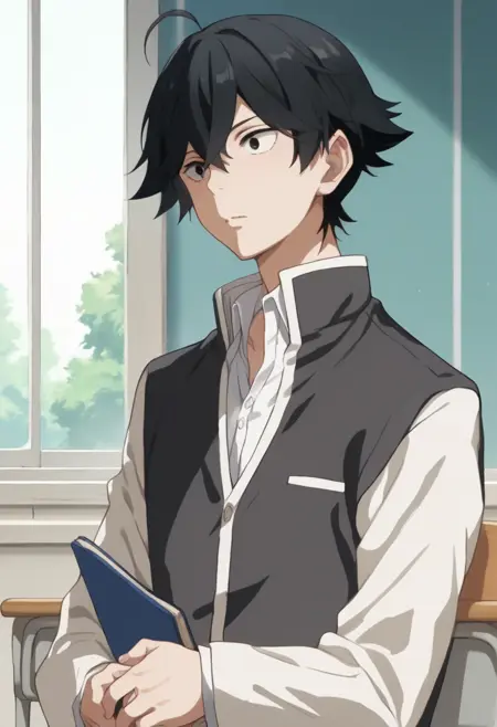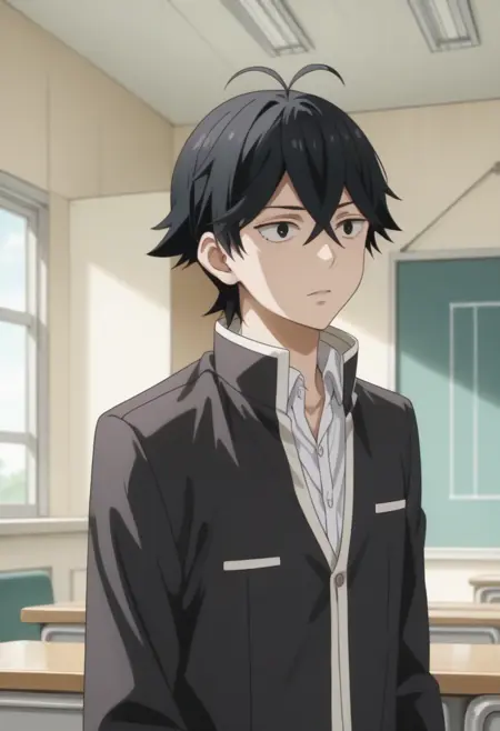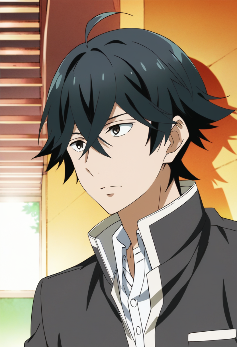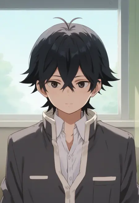 sei handa, black eyes, black hair, ahoge, 1boy,