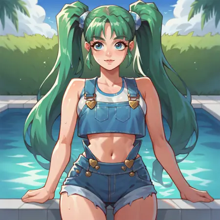 트윈테일, 크롭 탑, 청바지, 오버올, 반바지, 수영복