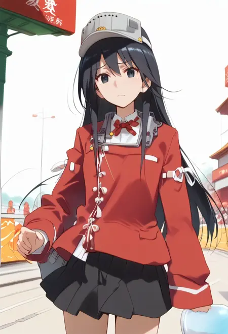visor cap, japanese clothes, kariginu, pleated skirt, scroll,