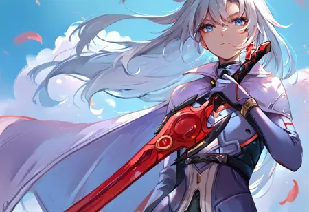 Tags (weapon): holding red sword, red sword, energy sword