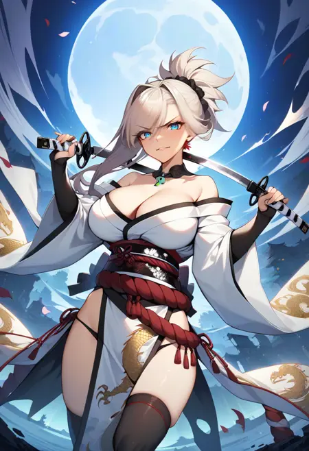 最初我想把所有内容整合到一个LoRA中,但我反复训练后意识到,分开更好,否则武士和服会与紫色和服等混在一起。