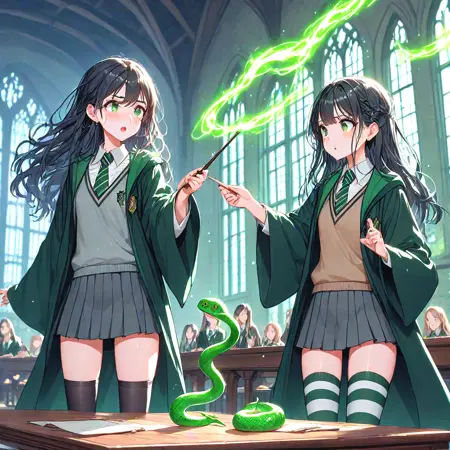 Note: If need snake, please add "snake, serpent". This time I trained pony lora in batch size 4, which I think is too much...So girl's hair and fingers are a little rough...