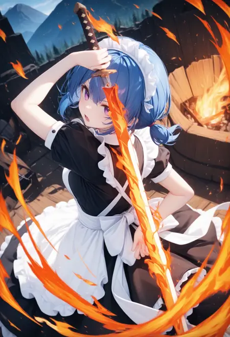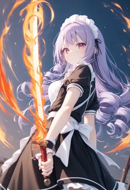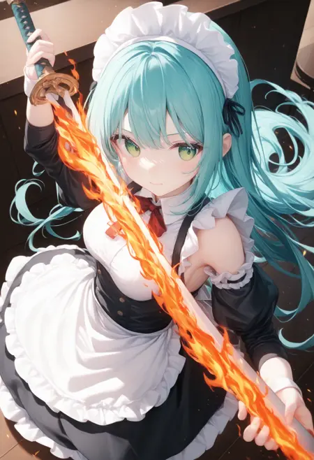불꽃에 싸인 검을 들게 하는 LoRA입니다.