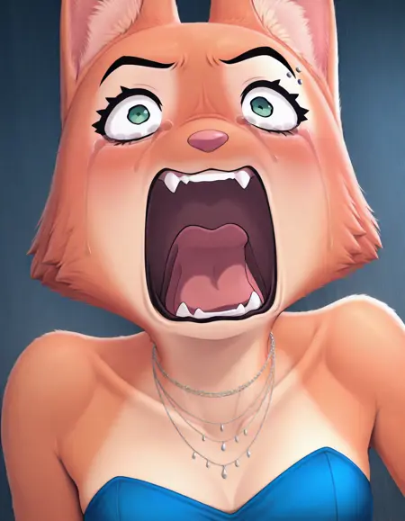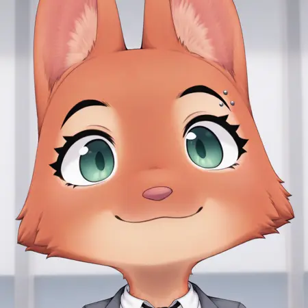 프롬프트: Diane_Foxington, 생강색 털, 은색, 눈 brows에 피어싱, 먼지 핑크 코, 여우 꼬리.