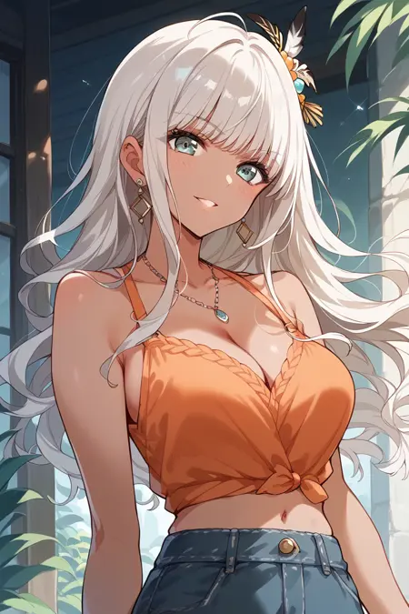 달리아, 검은 피부, 1girl을 사용. 다양한 옷을 원한다면 샘플 이미지의 프롬프트를 참고하세요. 헤어스타일에는 긴 머리, 꽃, 머리 장식을 사용. 모든 것이 잘 작동. 헨타이도 가능.