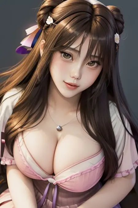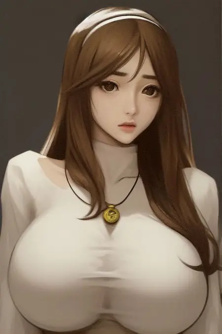 sixgmix,大眼睛,一名女孩,单独,写实,嘴唇,看着观众,长发,棕色头发,棕色眼睛,蓝眼睛,戒指,大胸,珠宝,鼻子,肖像,微笑,闭嘴,黑发,黑眼睛,发带,项链,衬衫,看向一侧