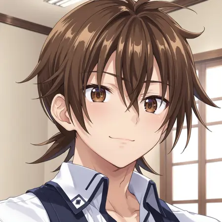 Issei hyodou, Brown hair, Brown eyes,Hair between the eyes, Fit body,