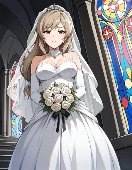 Trigger word: shimada chiyo, 1girl, mature female, low-tied long hair, light brown hair, brown eyes