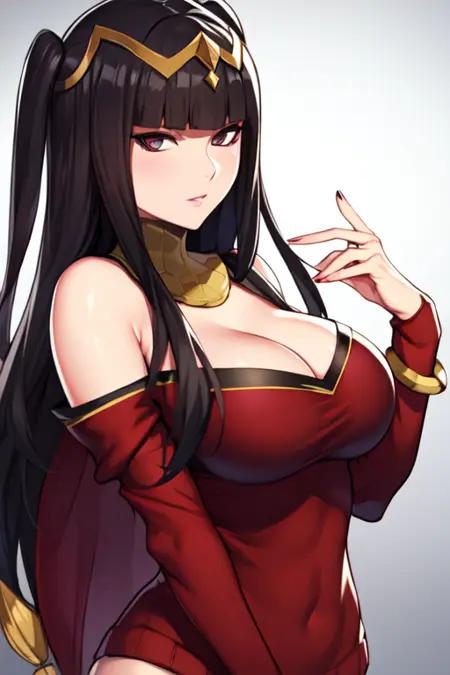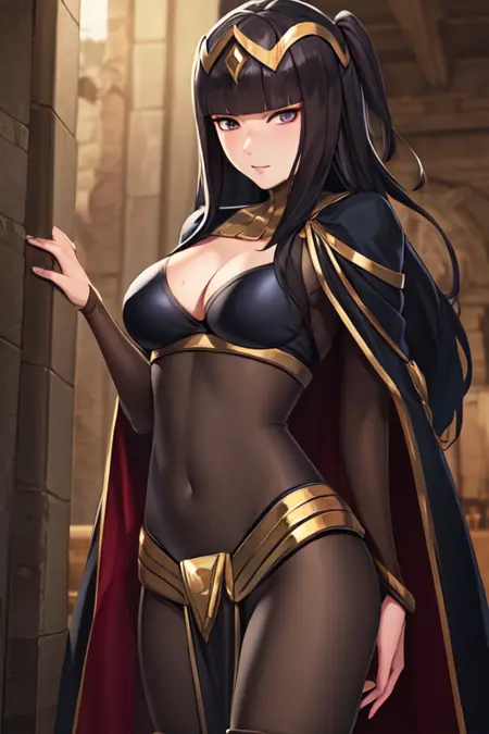 このキャラクターを呼び出すには、「lora:TharjaFE:strengthサージャ、ゴールドライン入りボディーストークィング、ゴールドカラーの襟、ゴールドのロインクロス、髪飾り、ケープ、ハイヒール」と入力してください。『ファイアーエムブレム ウォリオーズ』の軽い3Dビジュアル風には、「3D Model」を使用できます。