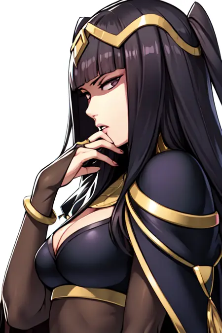 要使用该角色,请输入提示:“lora:TharjaFE:strength萨尔佳,金色镶边紧身衣,金色项圈,金色裹腰,发饰,斗篷,高跟鞋”。可使用“3D模型”提示,以获得《火焰之纹章:战争》风格的轻度3D美感。