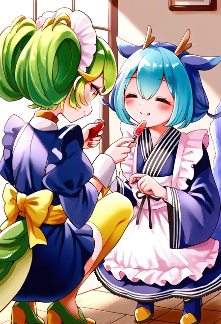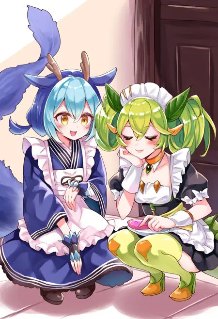Tags (character 1): parlor dragonmaid, dragon girl,
