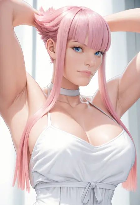 man0n, pink hair, blue eyes