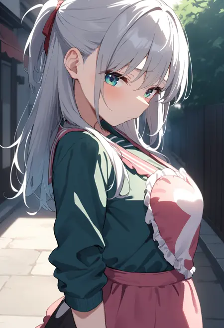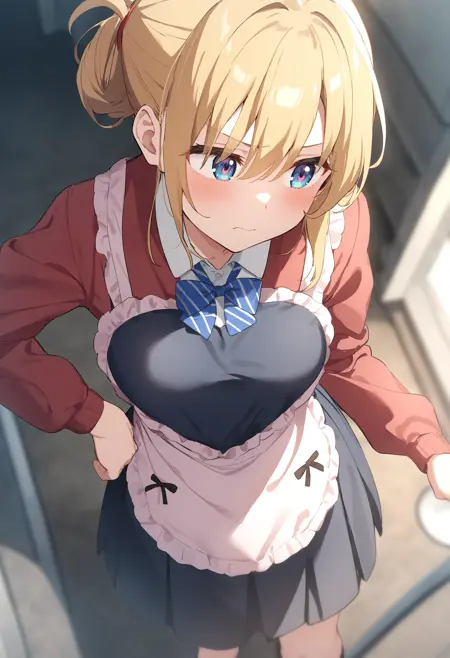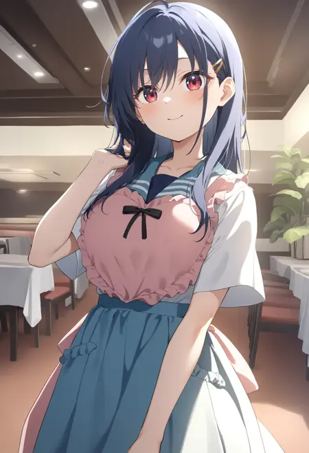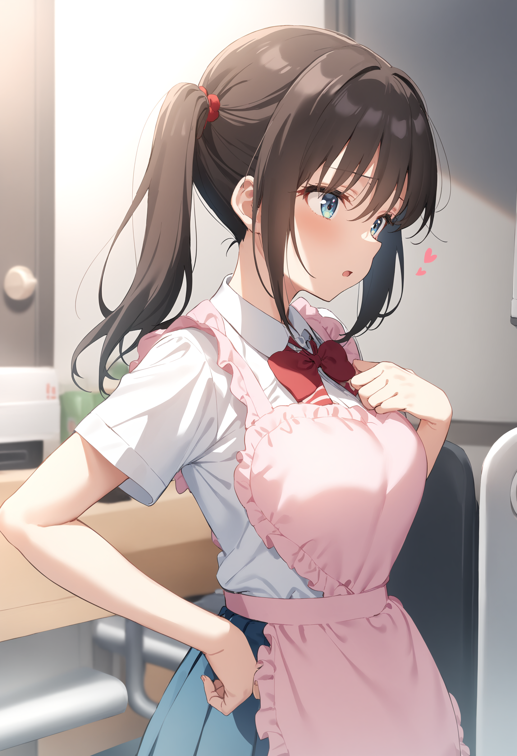 胸に大きなハートを付けたエプロンを着たLoRAです。