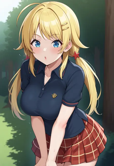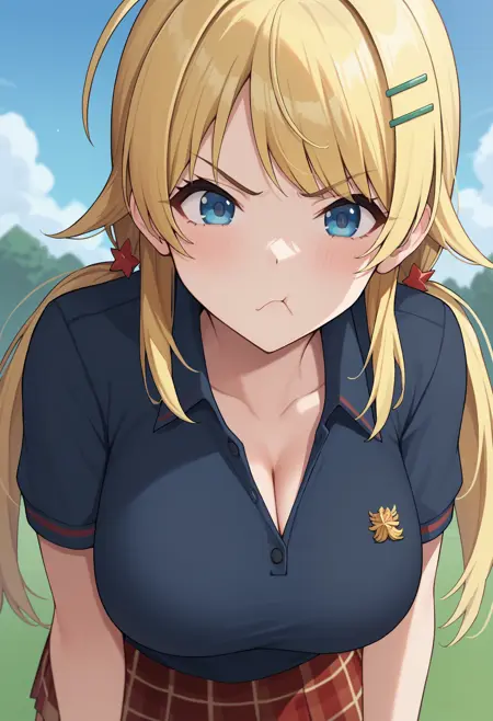 메구루의 폴로 셔츠에 있는 배지가 다른 복장으로 번질 수 있습니다. 발생 시 LoRA 강도를 낮춰보세요.