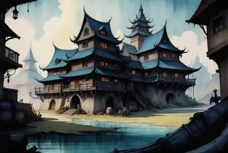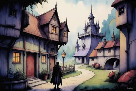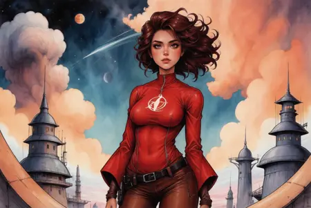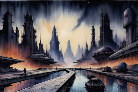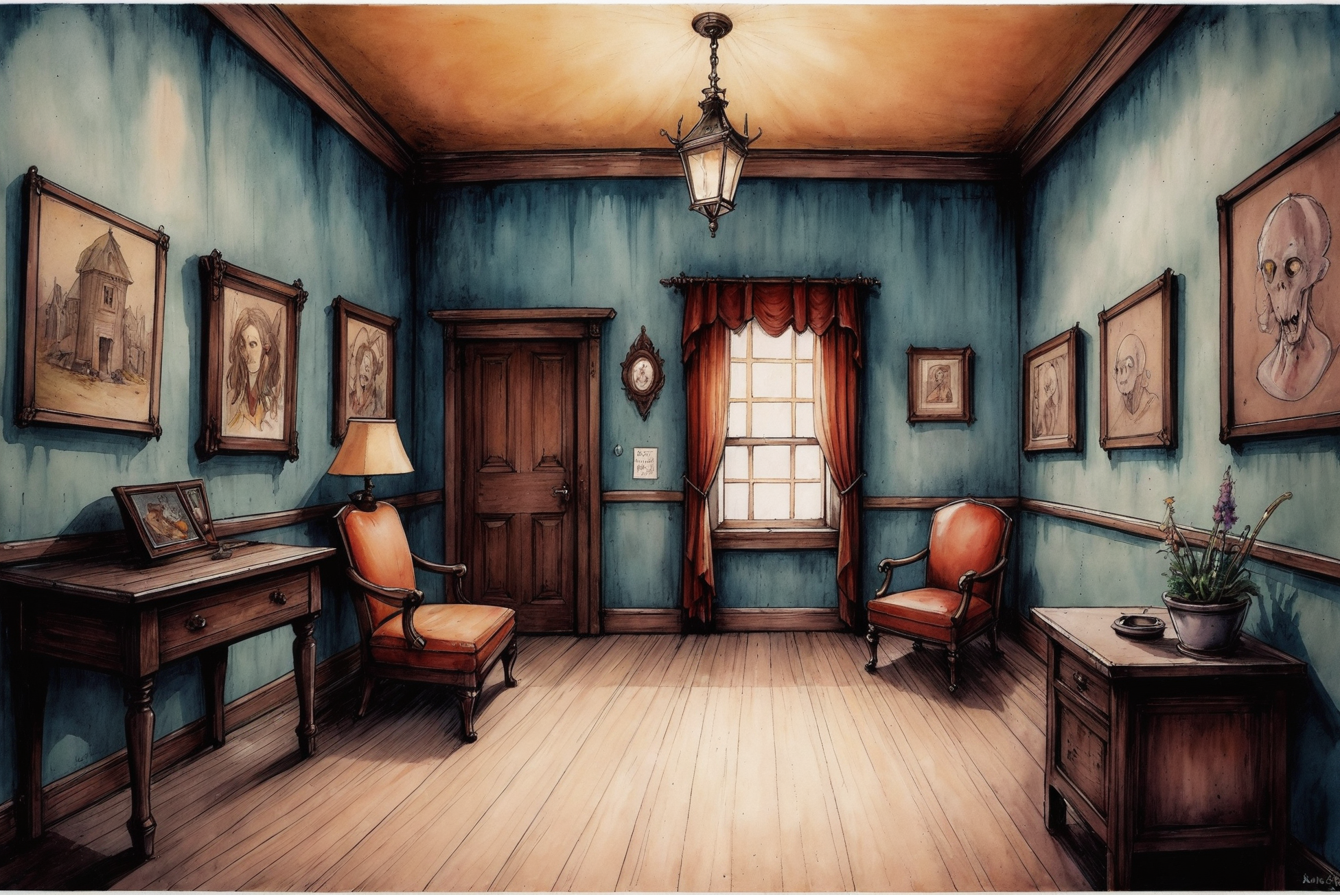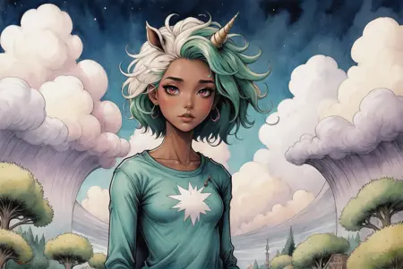 Envy Starlight用の暗く、こわい、超現実的な水彩とスケッチスタイル。