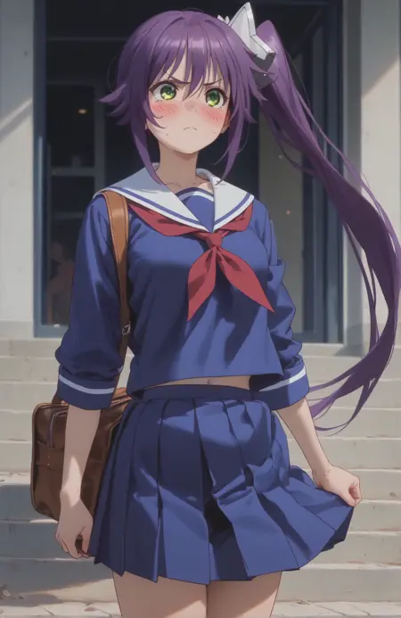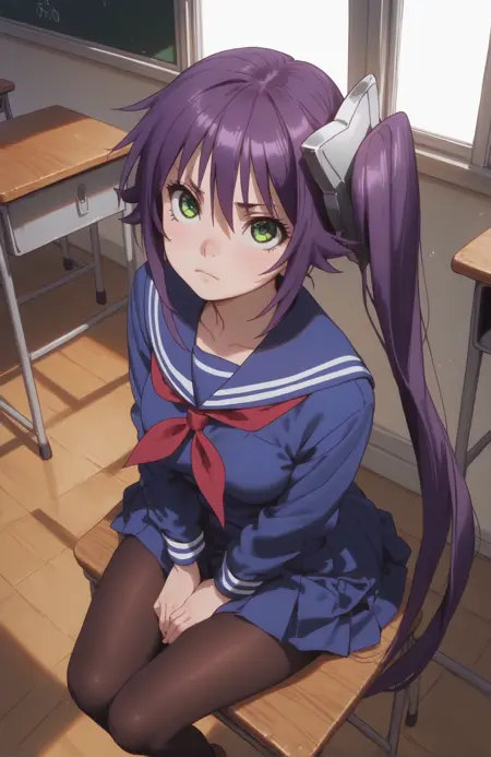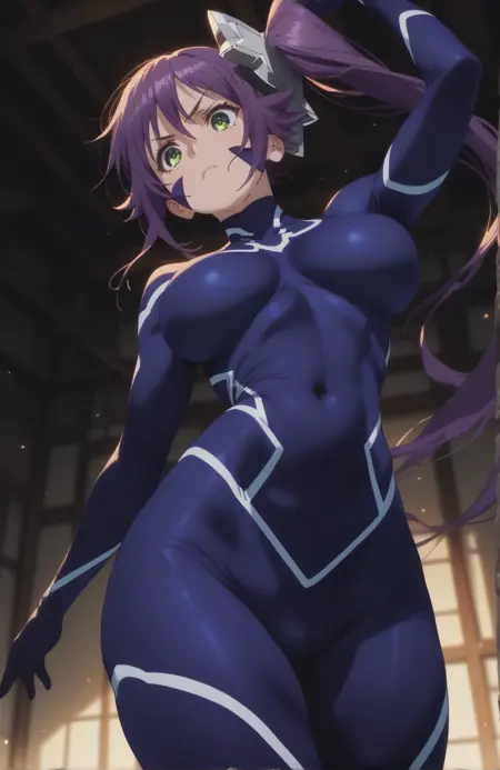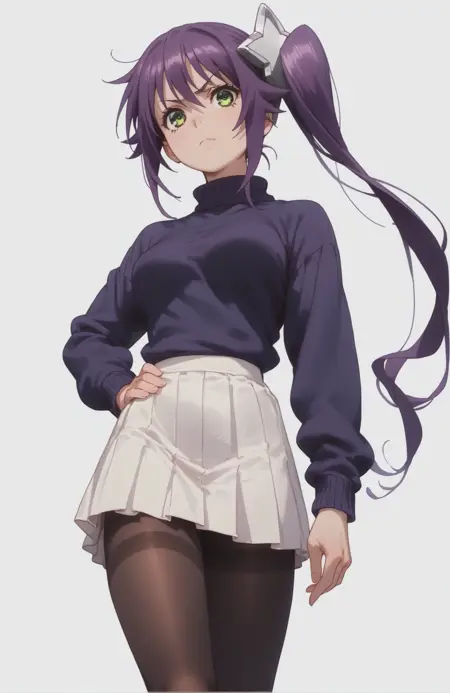 sagiri, 1girl, solo, green eyes, purple hair, side ponytail, long hair, hair ornament