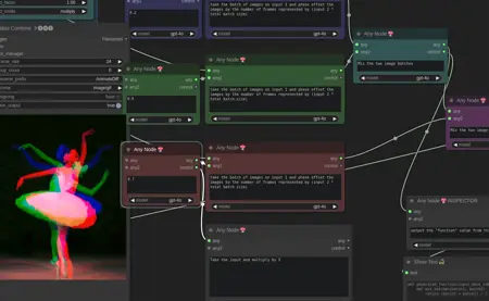 其中包含多个工作流,展示了在 Twitch CivitAI 直播中介绍的 AnyNode 的各种不同用途。