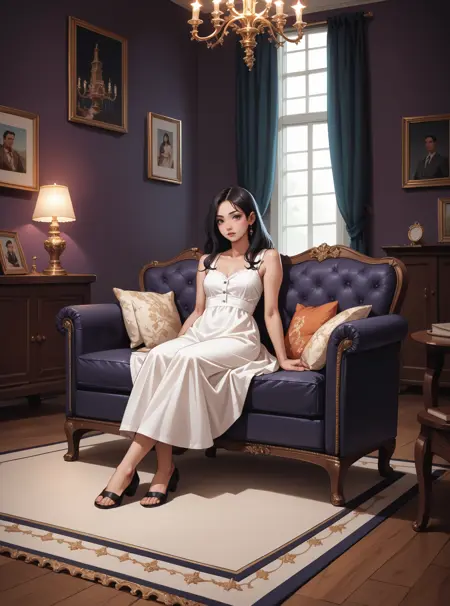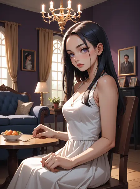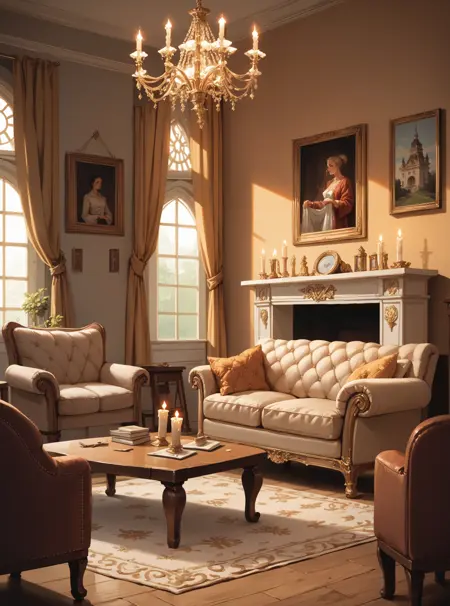 キーワード:hud_vc_lr、リビングルーム、チェア、テーブル、絵画(オブジェクト)、キャンドル、シャンデリア、ラグ