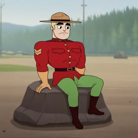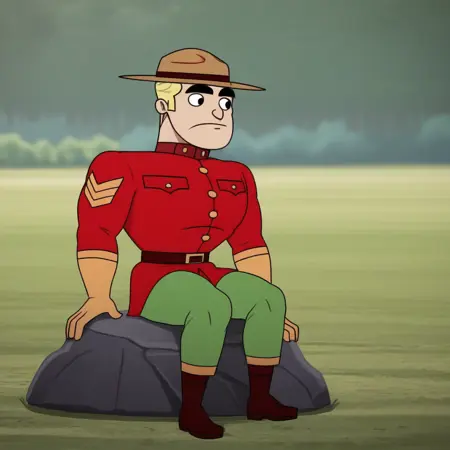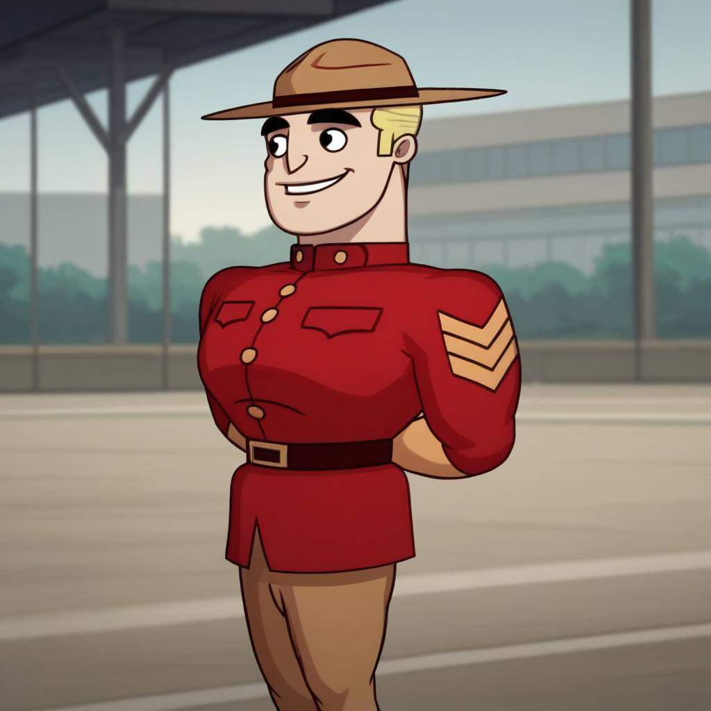 StraitMccool, 1boy, solo, blonde hair, thick eyebrows, black eyes, hat, uniform, red uniform, muscular,