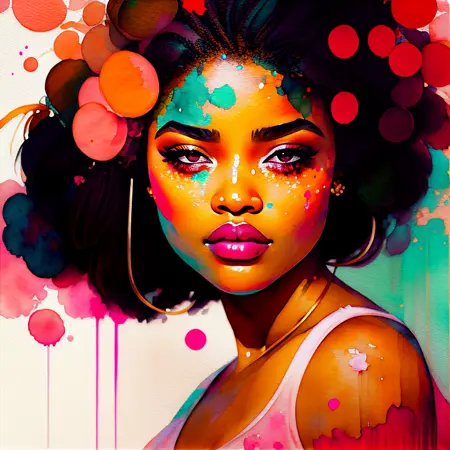 wtrcolor style, Digital art of (subject), official art, frontal, smiling, masterpiece, Beautiful, ((watercolor)), face paint, paint splatter, intricate details. Highly detailed, detailed eyes, [dripping:0.5], Trending on artstation by [artist]