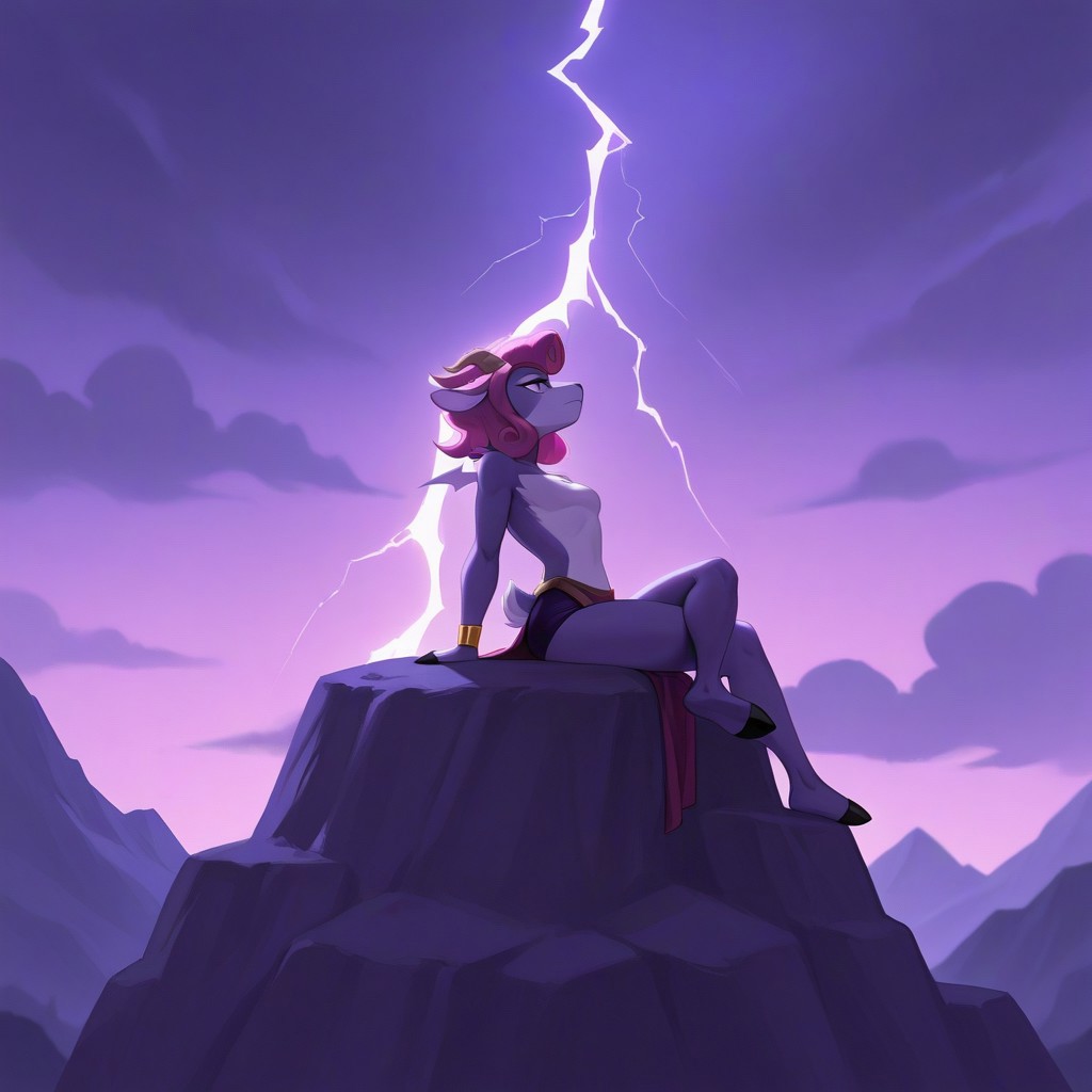 압사: absa, 퓨리, 여성, 염소, 보라색 털, 분홍색 머리, 노란색 눈, 번개 날개