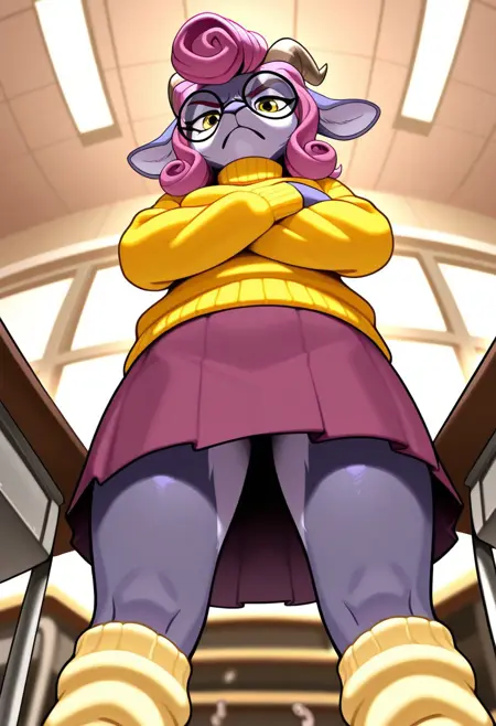 연인: absalovers, 안경, 노란색 스웨터, 터틀넥, 치마, 레그워머