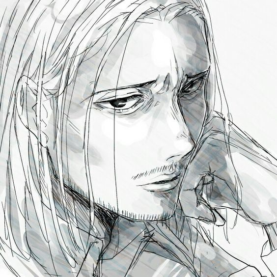He has a narrow nose and thin lips that are often set in a stern expression. His facial structure is angular and defined, contributing to his aristocratic appearance.
