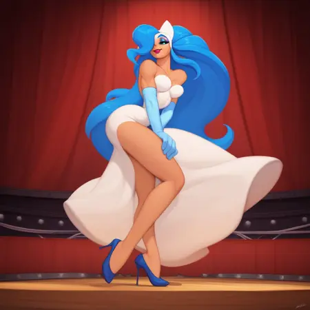 来自《暗黑破坏神》系列的菲莉西亚,但有所不同。对于没玩过《暗黑破坏神》的用户,这个版本的菲莉西亚出现在德米特里使用“午夜迷醉”技能时,角色会变为自身的替代形态。菲莉西亚的这一替代形象以经典女演员玛丽莲·梦露身着白色礼服的造型为原型。