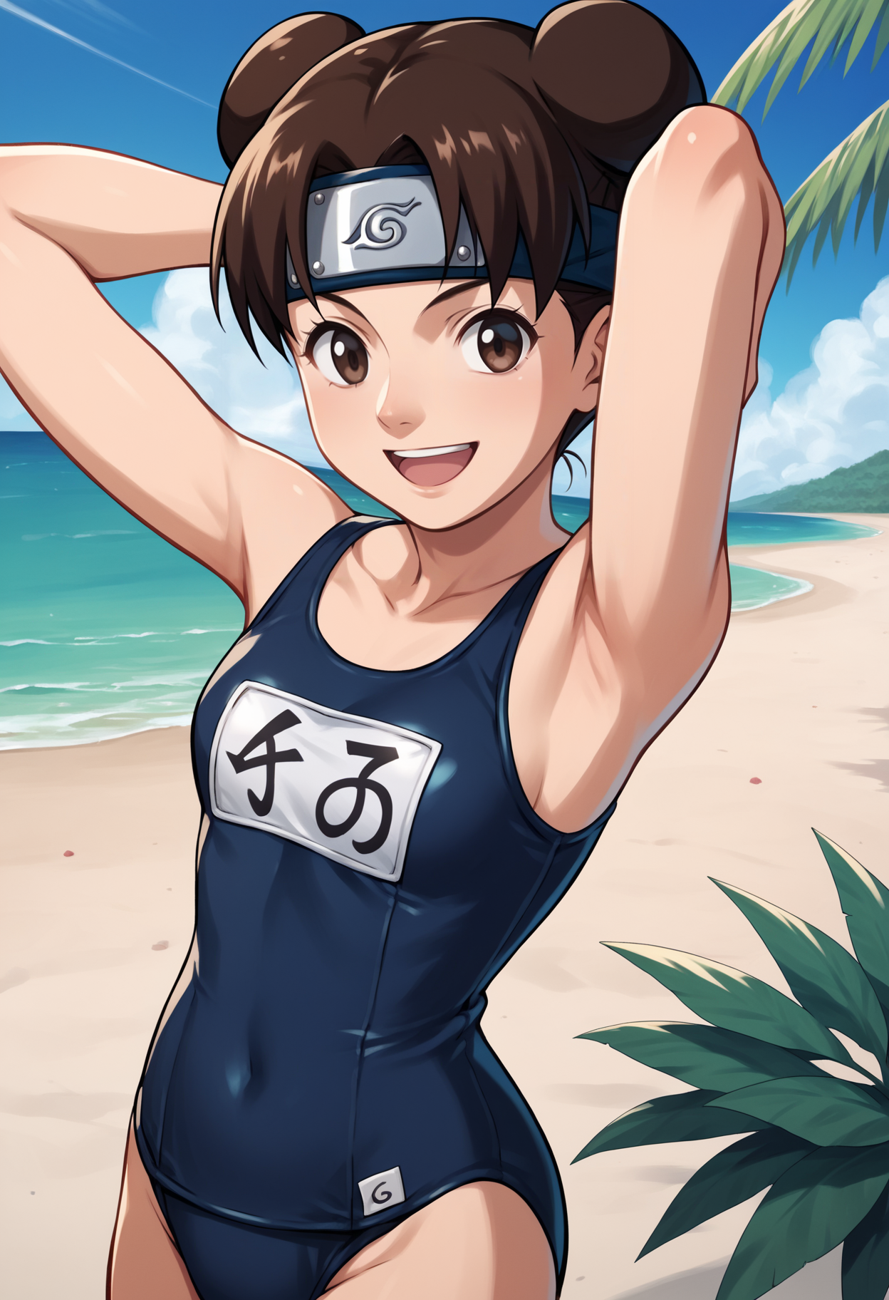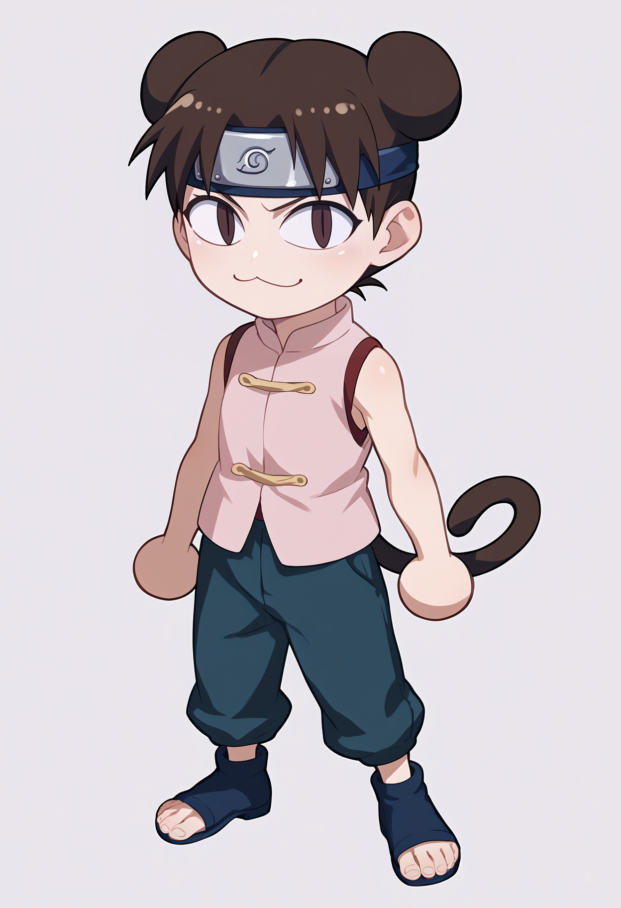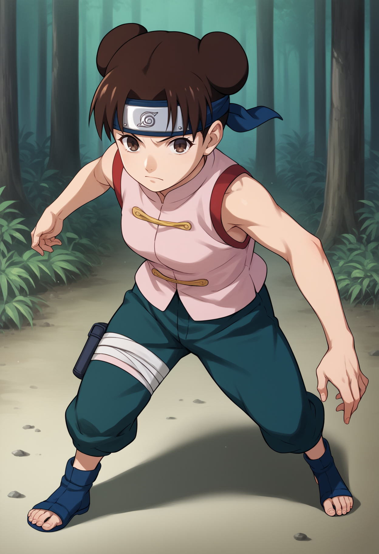 基础提示词:1girl, ytenten, brown eyes, brown hair, short hair, double bun, forehead protector, konohagakure symbol
