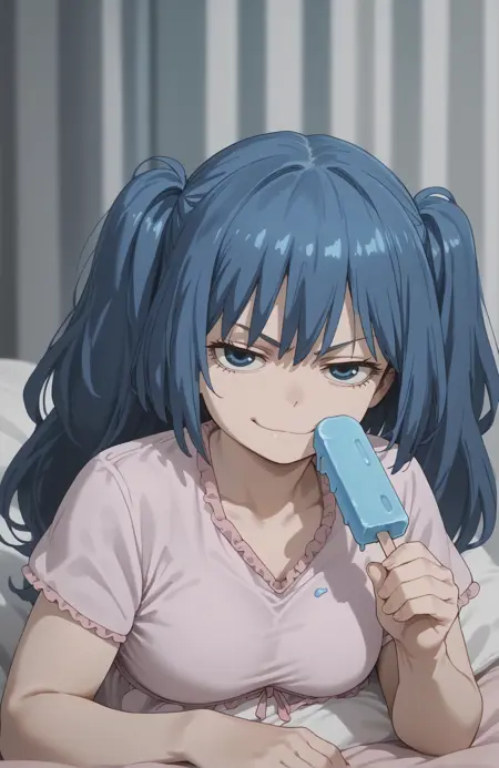 - saiko, 1girl, solo, blue hair, twintails, blue eyes