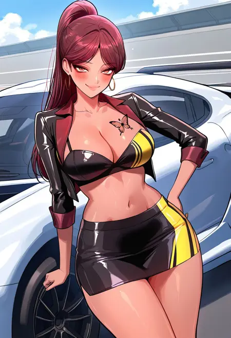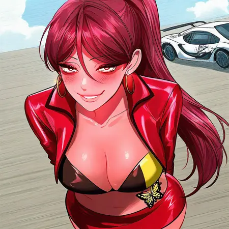 butterfly_noona ((날카로운 연한 갈색 눈, 맑은 눈, 밝은 동공, 아름다운 눈, 아름다운 보라แดง 헤어, 아름다운 긴 머리, 플랫테일, 거대하고 털이 많은 가슴, 날씬한 허리, 넓은 엉덩이, 아름다운 짙은 피부, 자연미, 특별히 아름다운 여자, 매력적인 여자, 초특급 섹시한 여자, 사욕적인 몸매, 유혹적이고 저속한 몸매를 지닌 섹시한 여자, 감각적인 몸매, 풍만한 몸매, 섹시한 미인, (허리 아래쪽에 나비 문신)) ), ((골드 후프 귀걸이)) , 분홍색 입술,