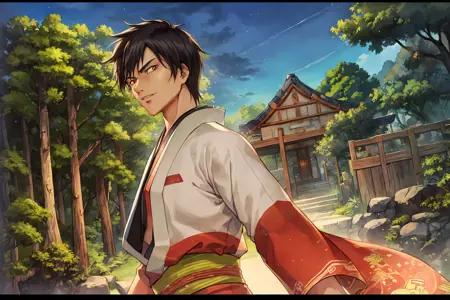 DEMON EYES KYO: Red eyes, Short hair, Black kimono _(mostly trained on this one)
